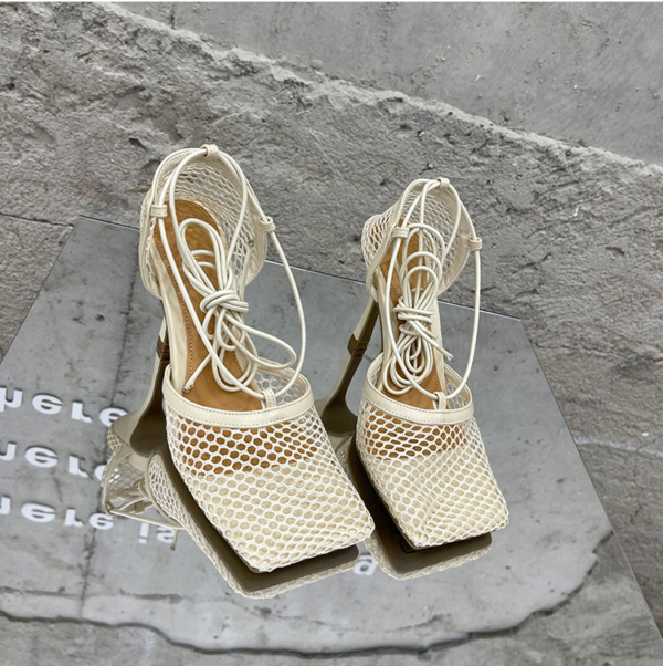 Step into sophisticated glamour with these high-heel stiletto pumps, designed for bold confidence and effortless style. Featuring a modern square toe and a delicate mesh upper, these heels bring a flirty yet refined touch to any outfit. The lace-up cross-tied design ensures a secure, adjustable fit, while the high stiletto heel adds the perfect lift for an elongated, graceful silhouette.