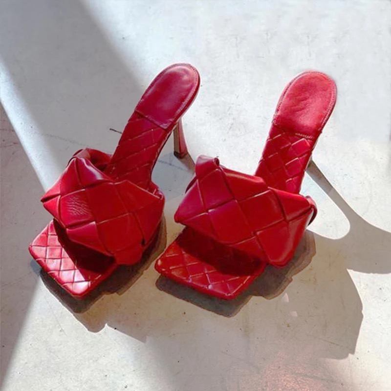 Women’s Designer-Inspired Weave Square Peep-Toe Stiletto Pumps